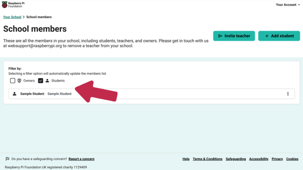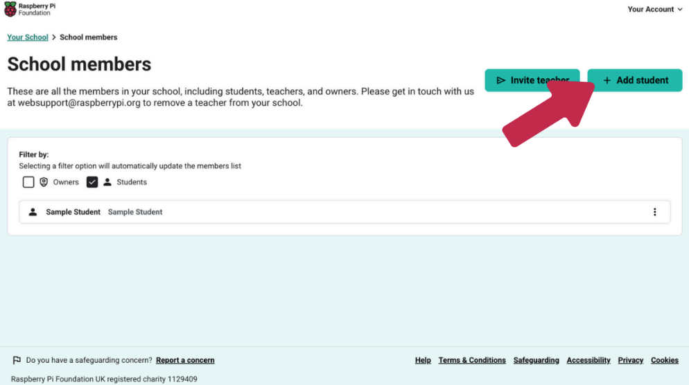 If you have tried these and you continue to have problems when adding a student to your school, contact us at websupport@raspberrypi.org.