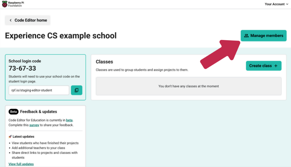 Add students to your school account by clicking to 'Manage members' from your school dashboard.