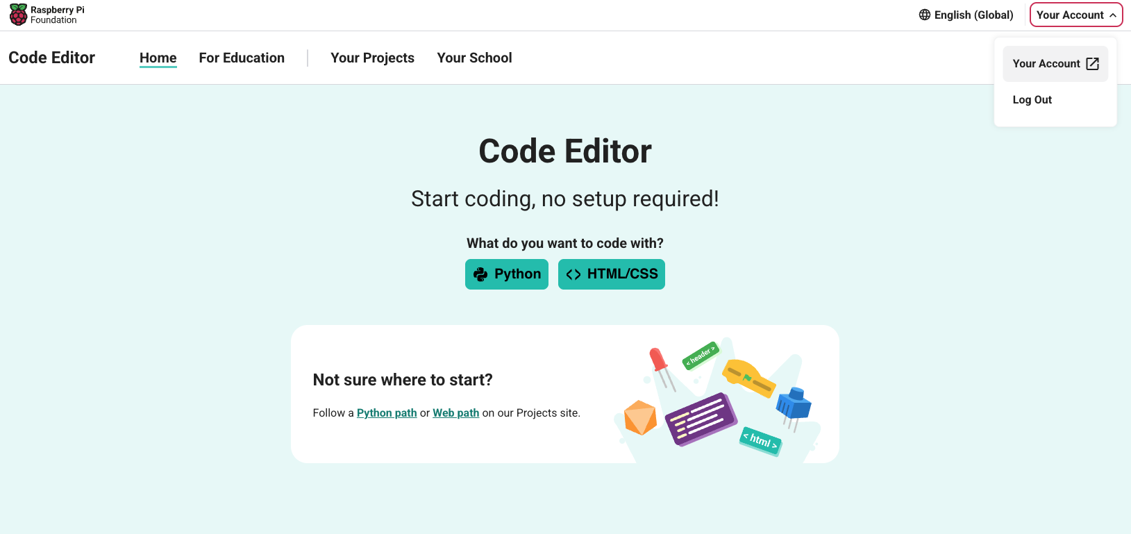 Ensure you are logged in. After you log in, in the top right hand corner of the navigation bar, click 'Your Account'.