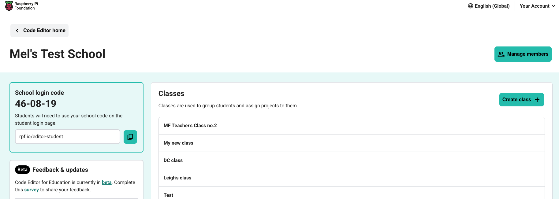 - you can always update the class name, description and add new students and teachers to the class from your dashboard in Code Editor for Education.