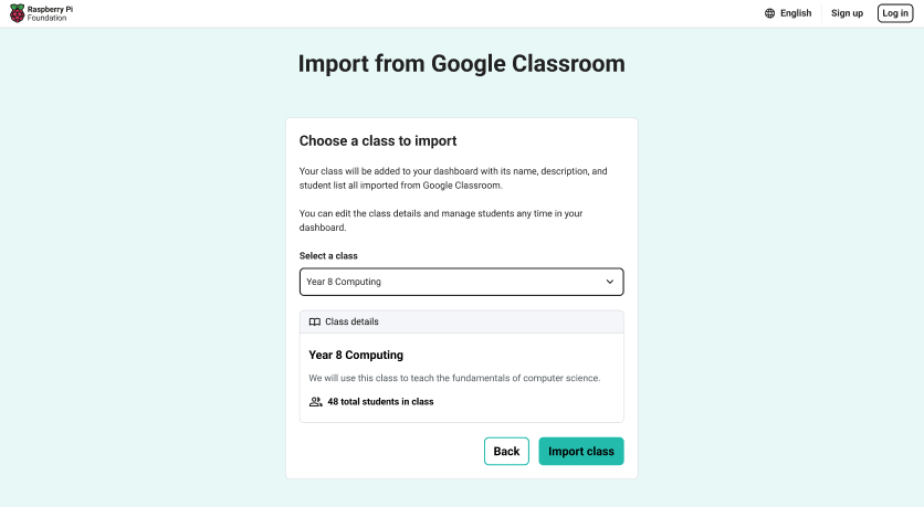 Once a class is selected, you will be shown details about that class, including the total number of students in the class. Once you are happy with your choice, click 'Import class'.