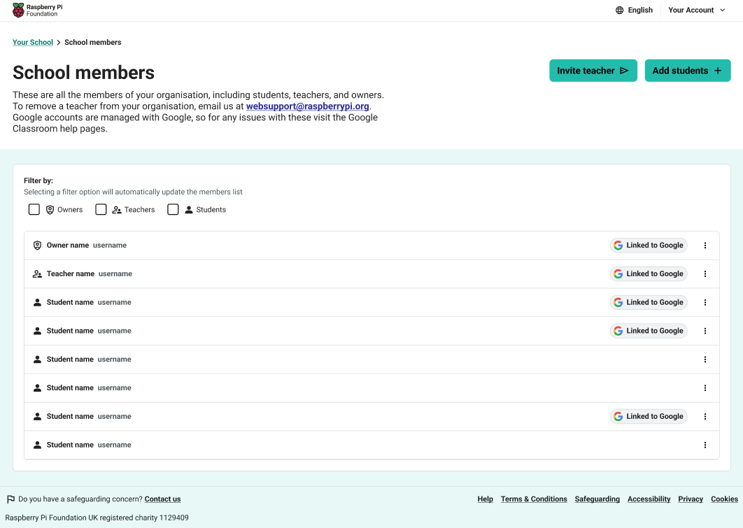On the school members page, you will be able to see which students have been imported into the school through Google Classroom. They will be noted as 'Linked to Google'.