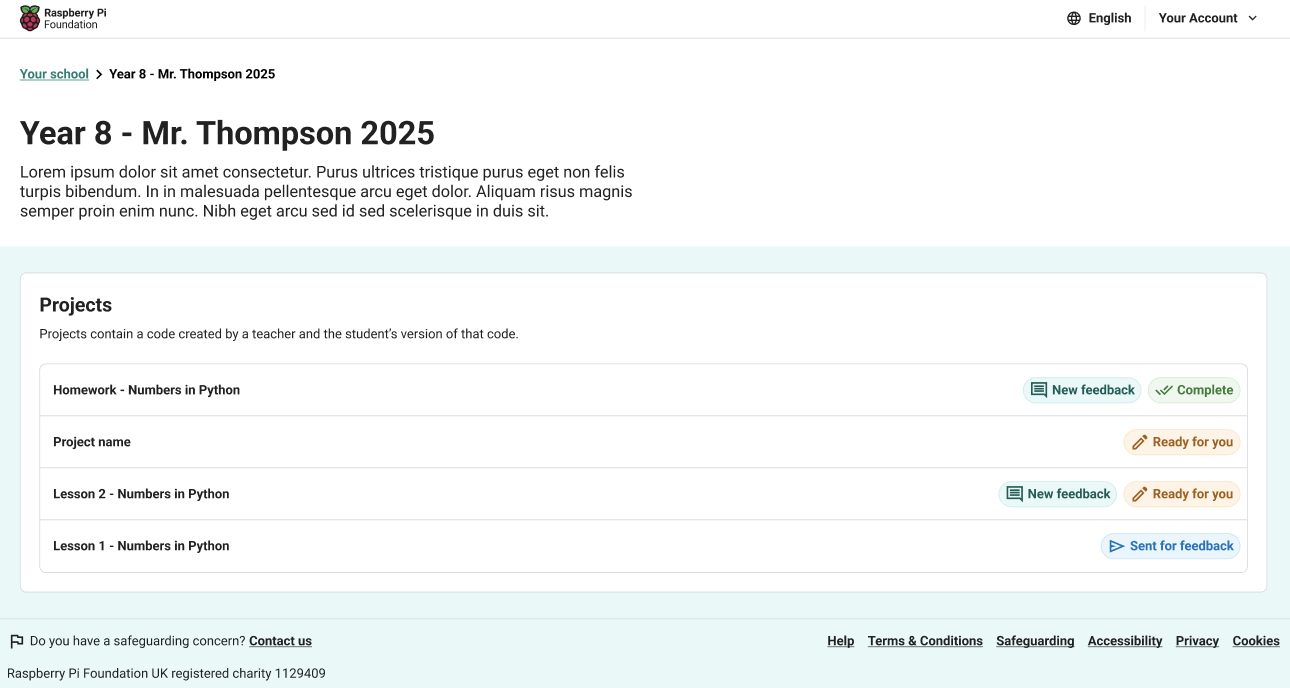Click your class to see a list of your projects. Each project shows a status so you know what stage it’s at:
