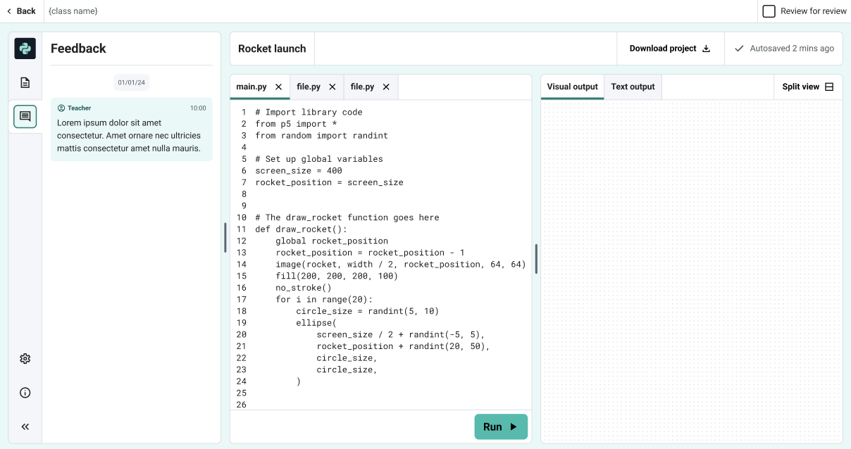 If your teacher has left feedback on your project, you can view it and make updates directly in the Code Editor.